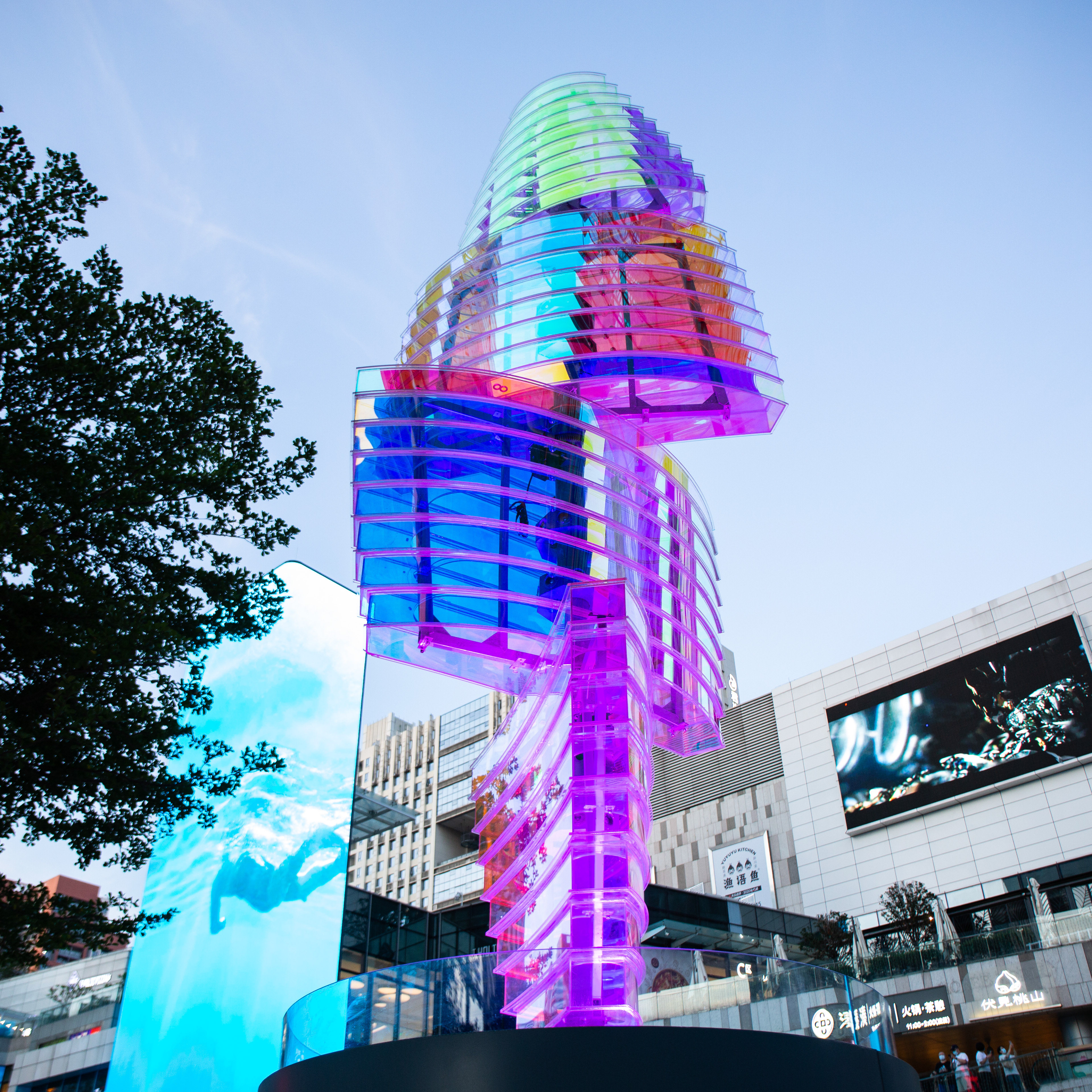 Light installation «Personal Supernova»  made of semitranslucent colored acrylic. Complex reflections occur while this object is exposed by light.