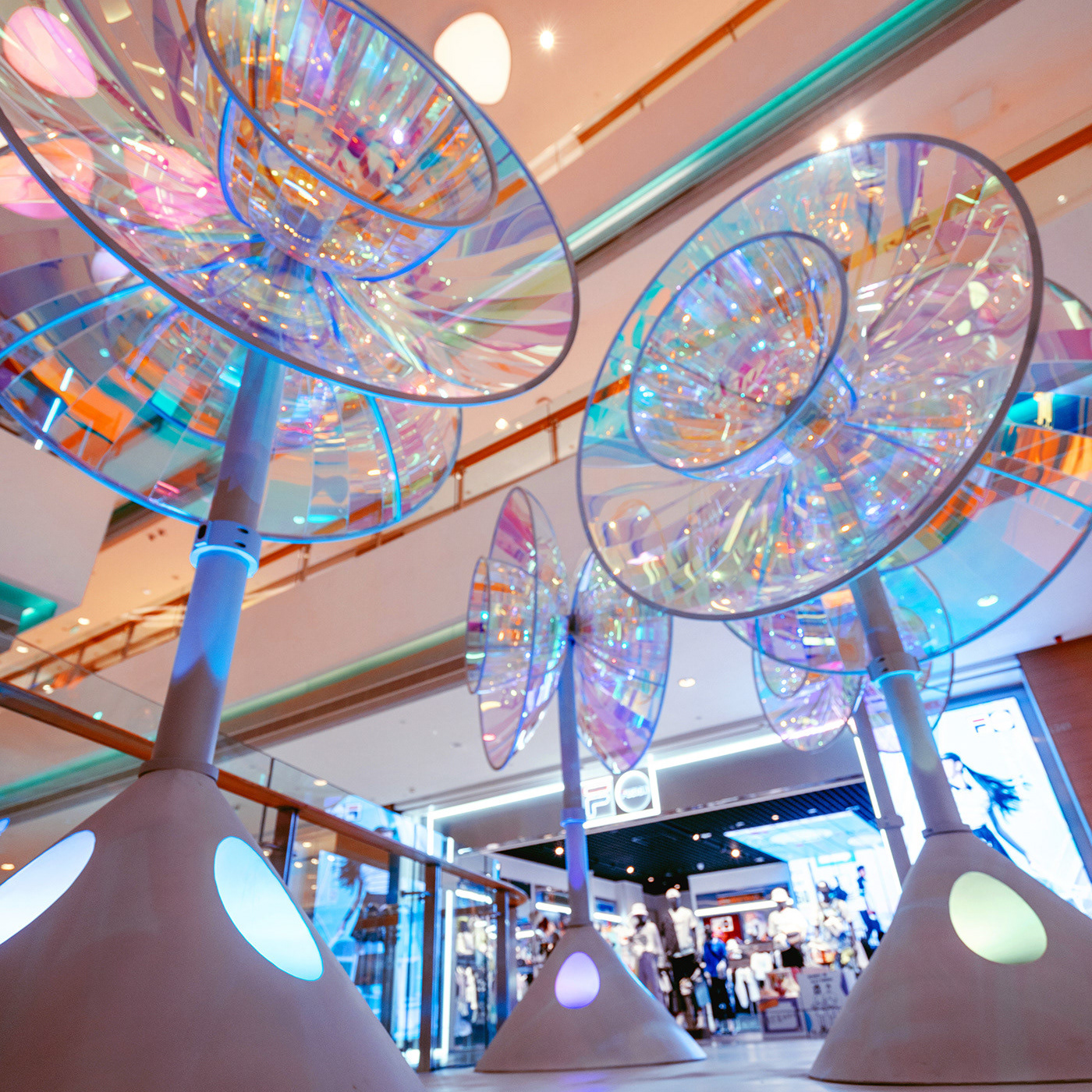 This immersive space was used to present the new collection of Swarovski jewelry "Sea of sparkle".