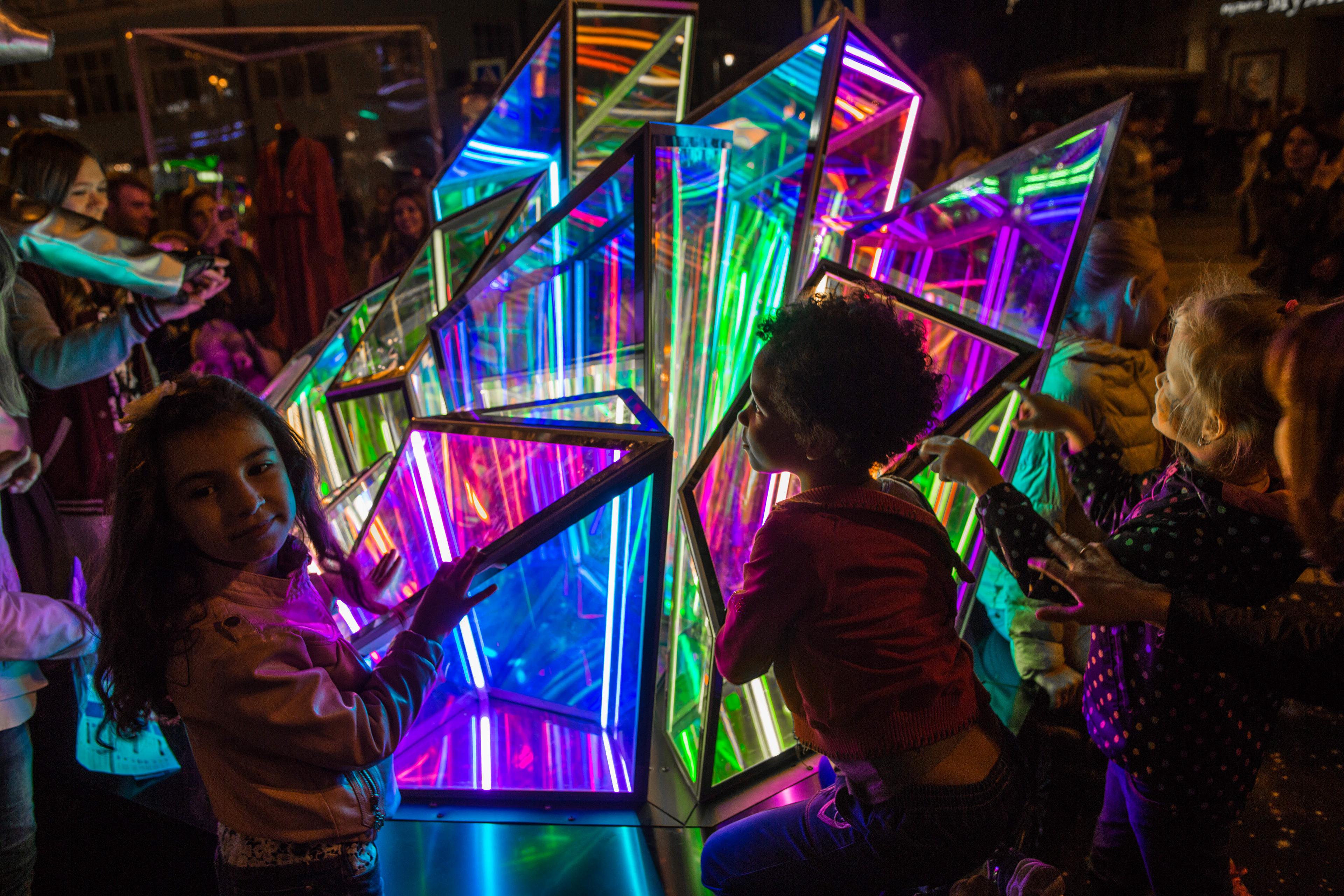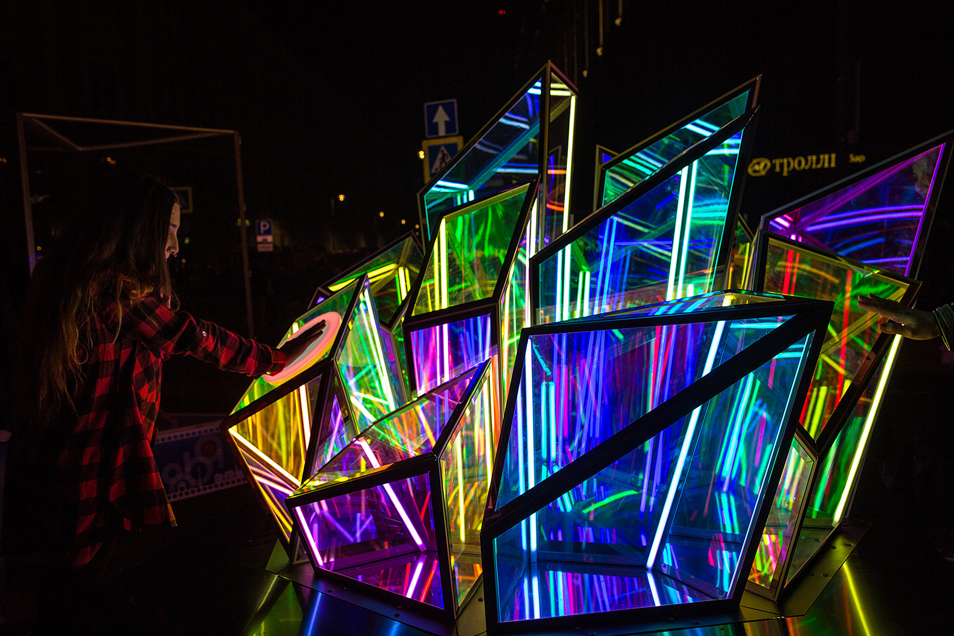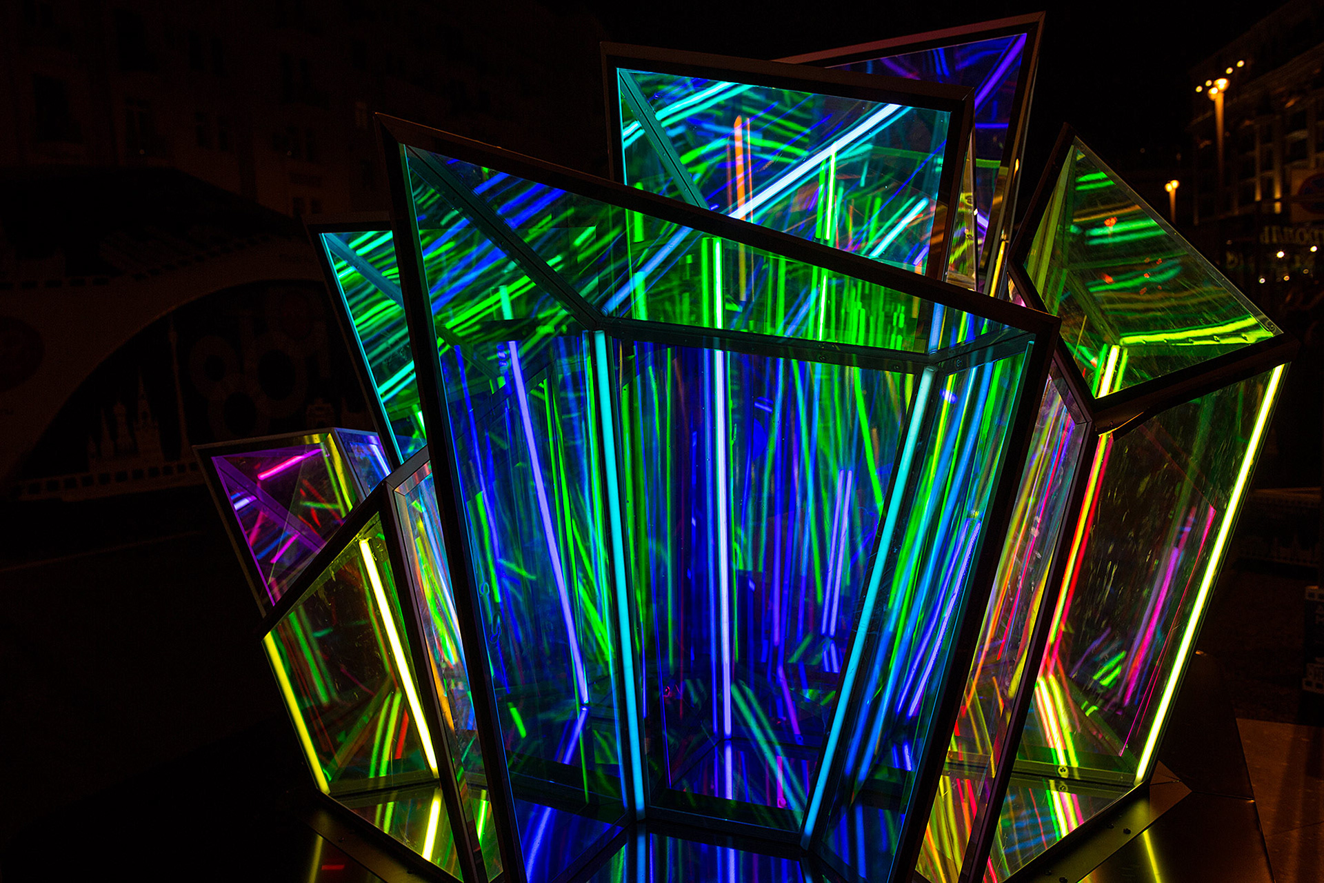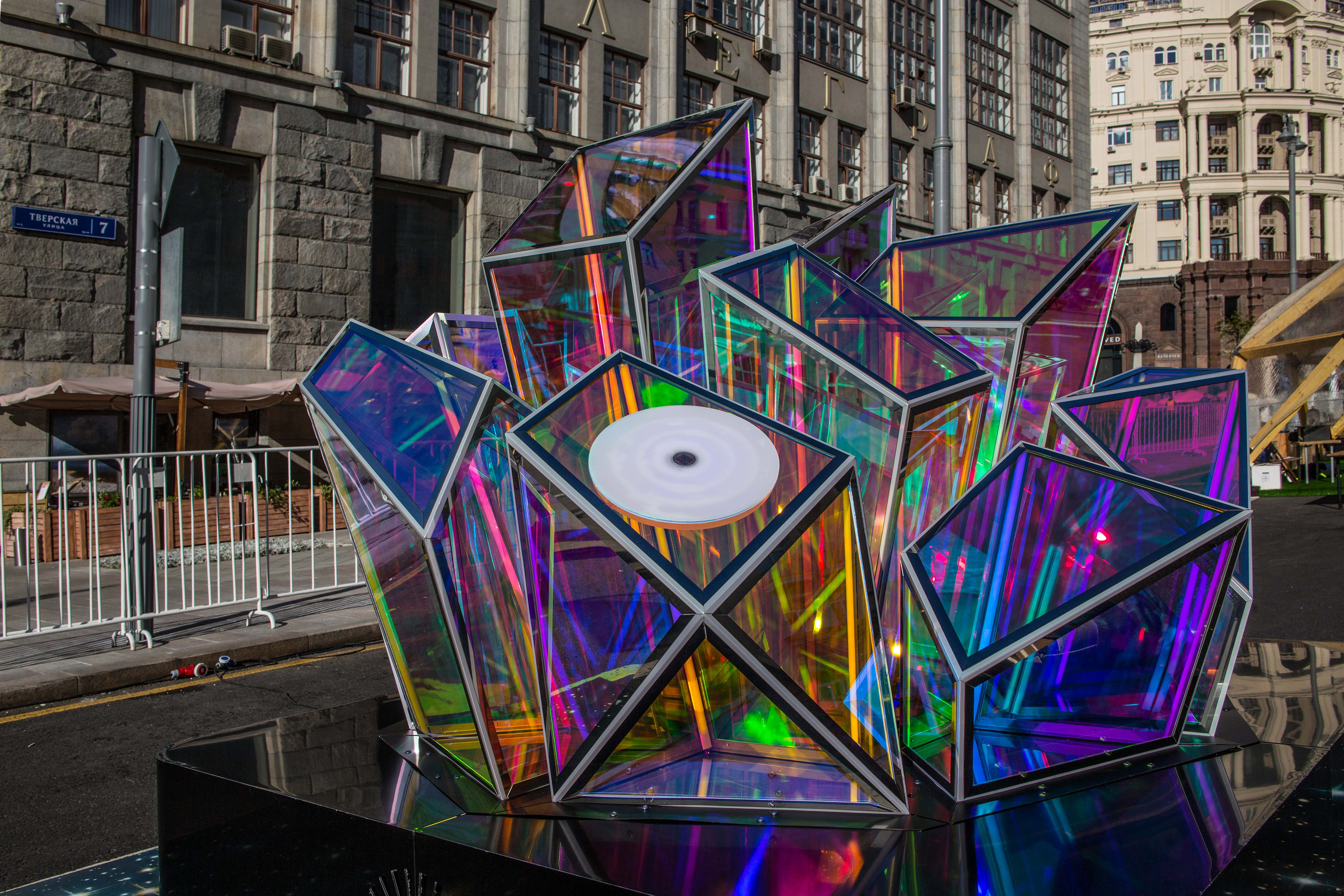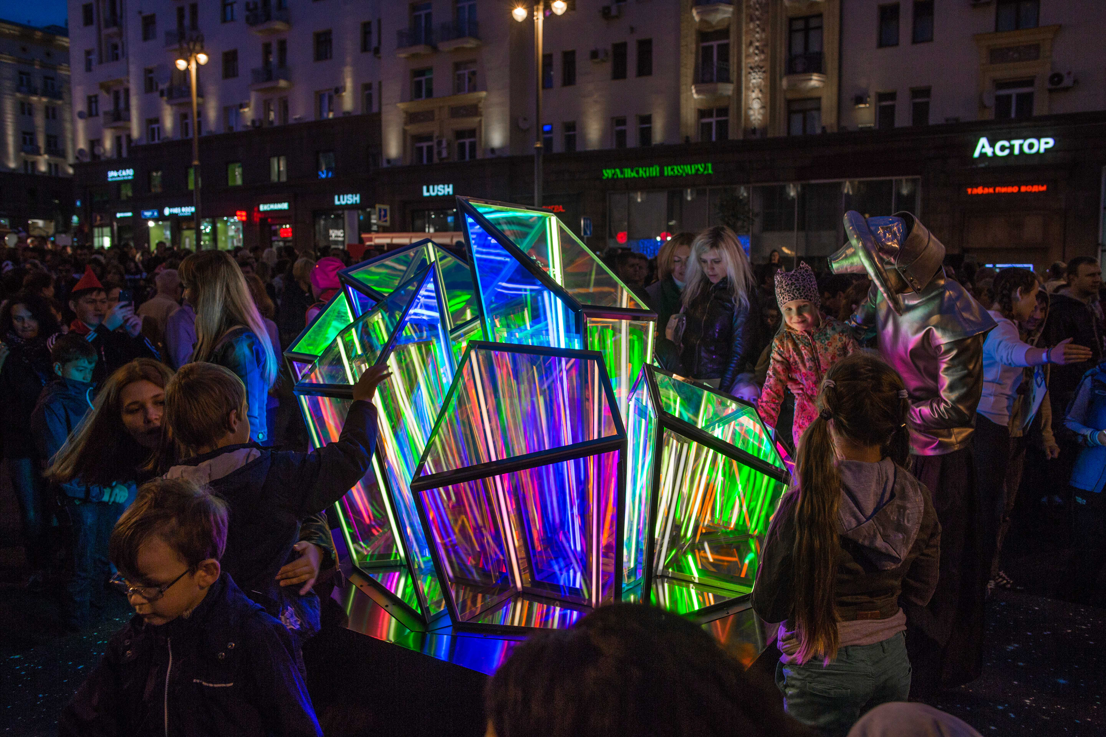 Interactive light installation for the Moscow City Day celebration. Tverskaya St. 12-13 september 2017.