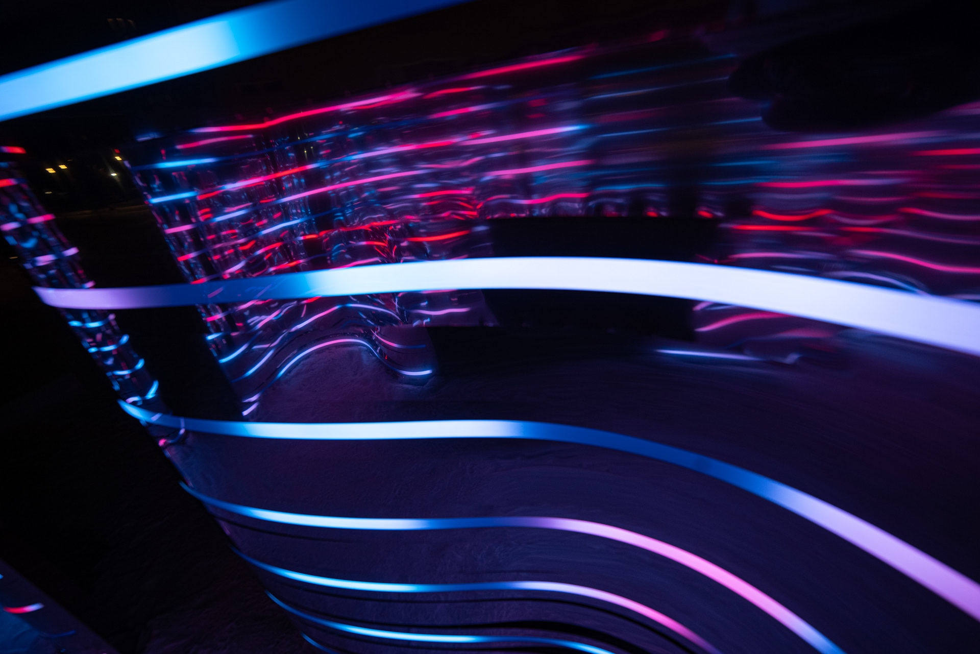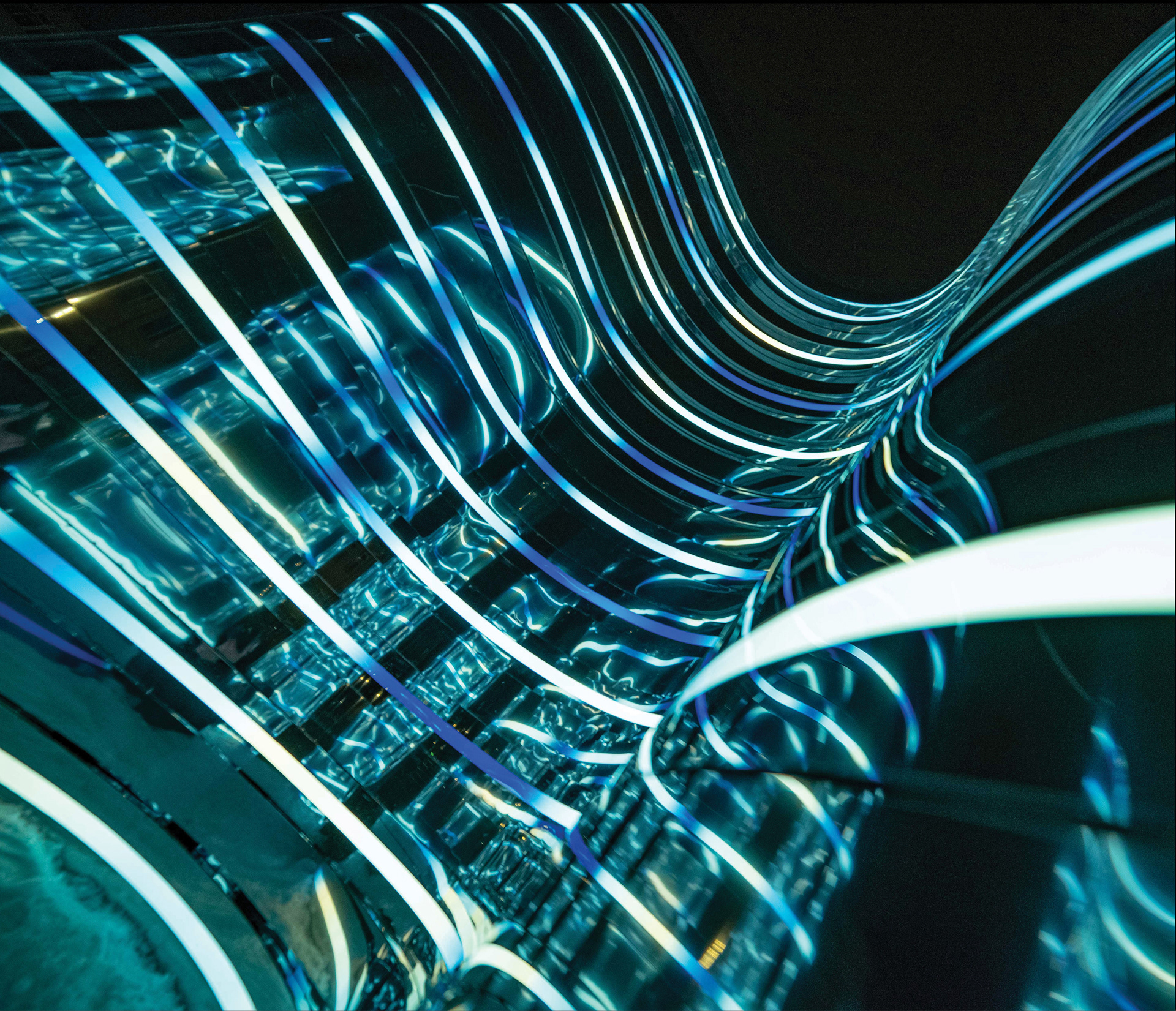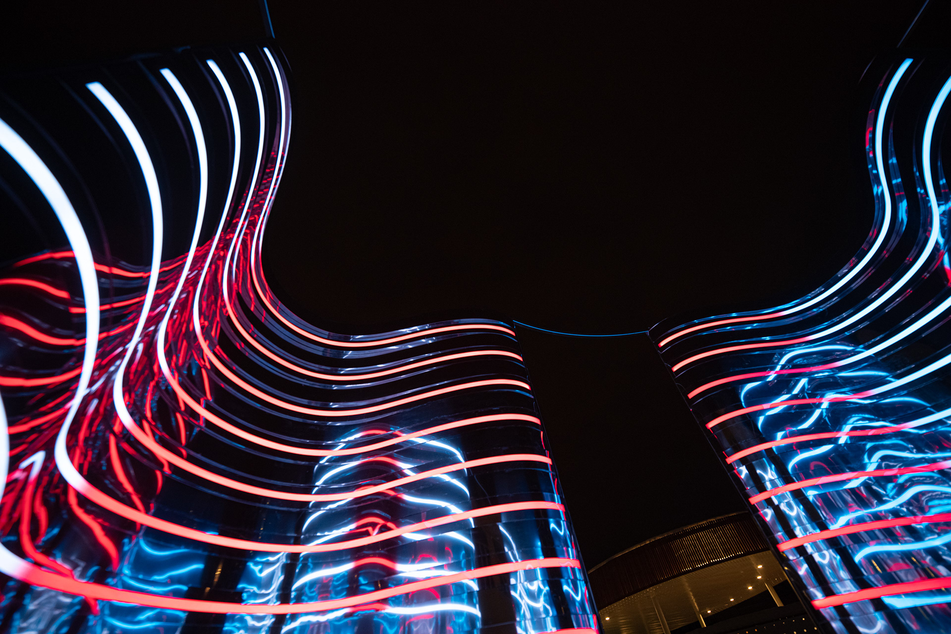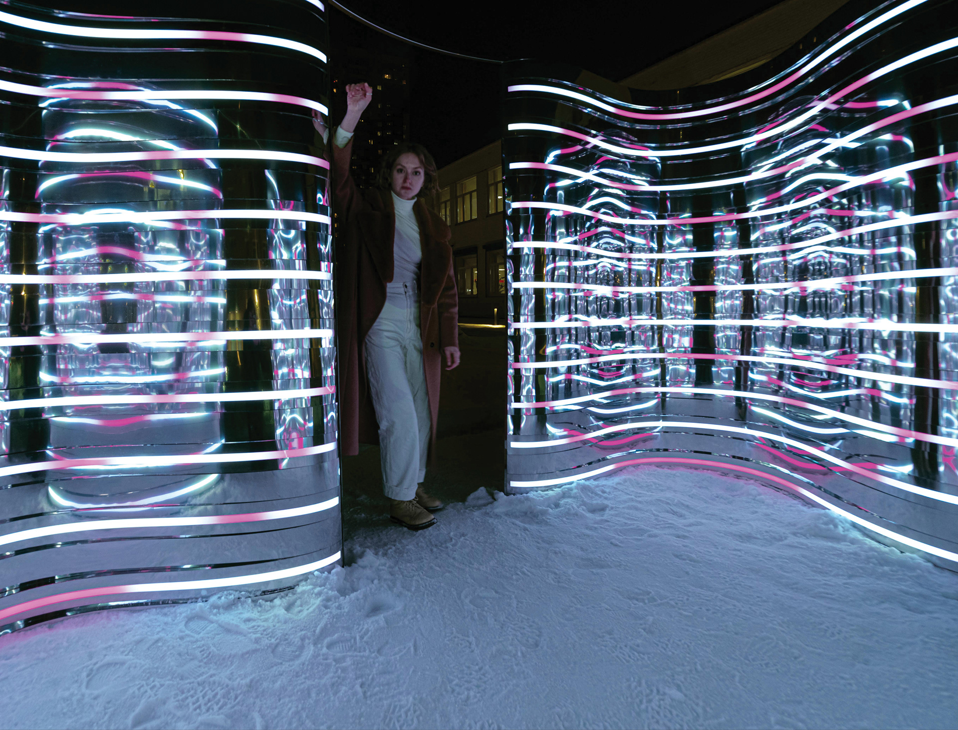 Композиция отсылает к образу Нуклона, состоящему из трех кварков. Нукло́ны (от лат. nucleus «ядро») — общее название для составляющих атомного ядра — протонов и нейтронов. Три идентичных элемента отражающиеся, собранных из зеркальной нержавеющей стали отражаются друг в друге. Каждый элемент состоит из десятков зеркальных полос различной кривизны, деконструирующих окружающее пространство. Благодаря криволинейной тектонике, создается плавная, "текучая" форма инсталляции. Внутренние обводы дополнены управляемыми световыми линейками, многократно усиливающими визуальные эффекты зеркальных переотражений.